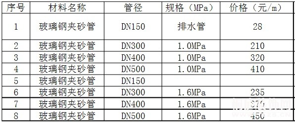 玻璃钢夹砂管价格表及其规格厚度和连接方式