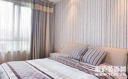 这一款卧室墙纸绝对是条纹控的最爱,不管是床品还是窗帘无一例外的选择了条纹,可见主人是如此喜欢条纹,浅色与深色的交错使整个墙面显得时尚感十足。