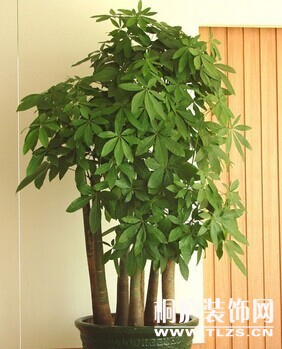 3、光照:发财树是阳性植物,耐阴性很强,因此,可摆放在室内光线弱的地方,摆放2~4周后,再放回光线强的地方,植株也不会受到损害。