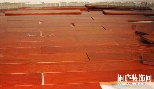 5、木地板铺装时相邻板块之间未按要求预留伸缝,受潮湿空气后吸湿膨胀起拱,甚至漆面挤裂;