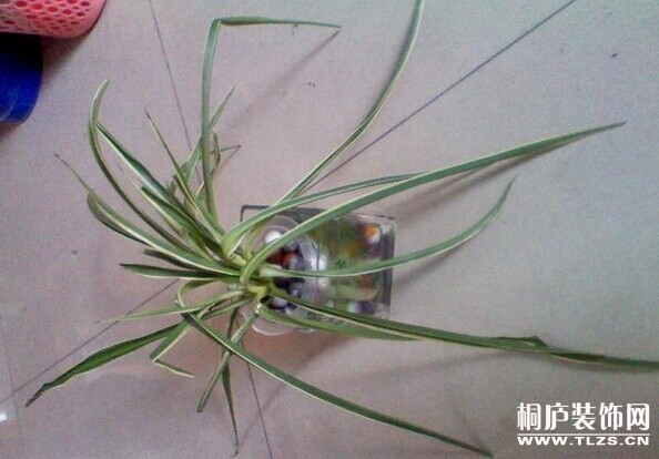 4、固定放置把处理好的吊兰插入瓶中,用玻璃球或石子等材料固定。注意保证吊兰植株能够直立在玻璃容器中,不要使植株歪曲,同时要保证在移动和风吹时,吊兰能够保持直立状态,固定根系的同时要注意保持根系的完整性,不要伤害的根系,同时也要注意使根系分散在容器周围。