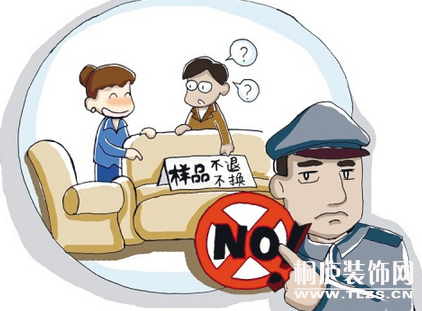 买下样品的消费者可能会发现,运回家的家具跟自己在卖场中看到的在细节上大有区别,如明显色差、面料花纹不同、木材用料不一致等问题。这是因为样品在在发货时可能被调商家换成同型号瑕疵品。由于样品退换条件大多限定为质量问题,因此遇上这种情况的消费者往往无法退换,只能默认哑巴亏。因此在确定购买时,消费者可与商家协商,在家具上做上标记并拍照留证,并在合同中写明不允许调换及发现调换时的处理方法。