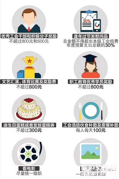 近日,全国总工会下发《关于加强基层工会经费收支管理的通知》(以下简称《通知》)的补充通知,针对全国各级工会组织使用工会经费为职工发放福利,做了细节性的解释,明确了过年过节工会怎么发福利、慰问品。