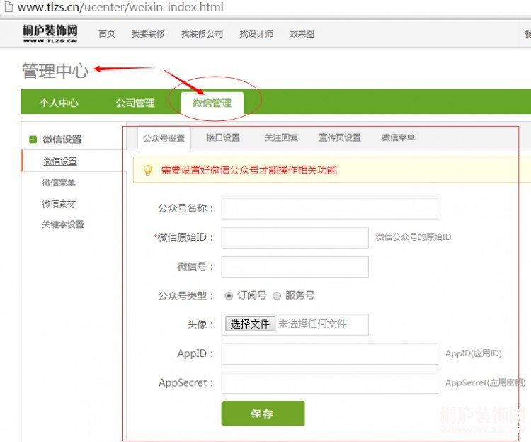 桐庐装饰网2015新版支持微信公众号对接,配置方法介绍