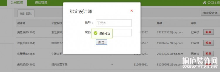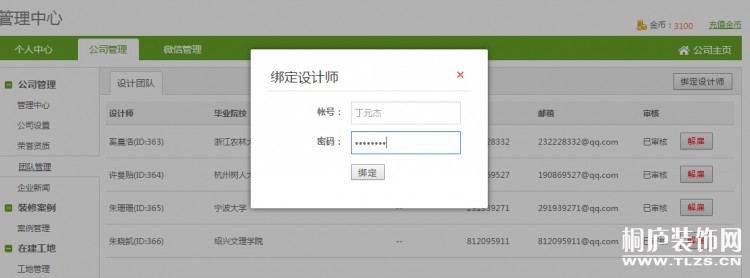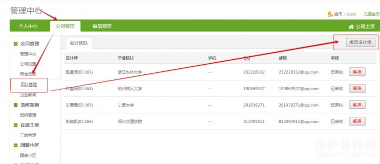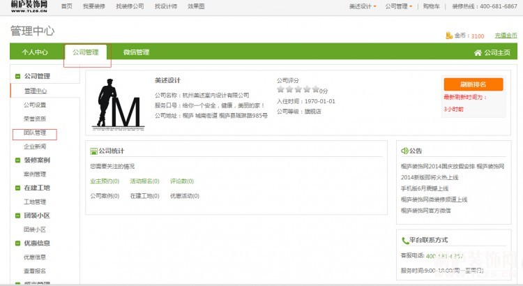 首先登入装修公司会员管理中心点击——公司管理——团队管理