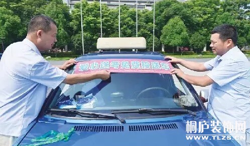 高考三天期间,运管处安排了17辆爱心出租车在桐庐中学考点门口,27辆在桐庐富春中学考点。爱心车队送考车辆统一张贴本次活动车贴,方便其他车辆在高考期间看到这些“爱心送考车”配合让行。届时,考生可凭高考准考证,免费乘坐系有绿色丝带、挡风玻璃上贴有爱心送考标志的爱心送考出租车。