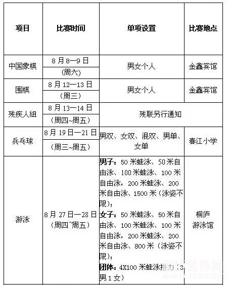 首先来首桐庐县运动会会歌热热场,听着颇为豪迈啊有木有!很想马上去现场感受下气氛啊484!那么问题来了,整个“五运会”有哪些比赛项目呢?分别是什么时间在哪里举行?来来来,看这里,小布都已经为你准备好啦!