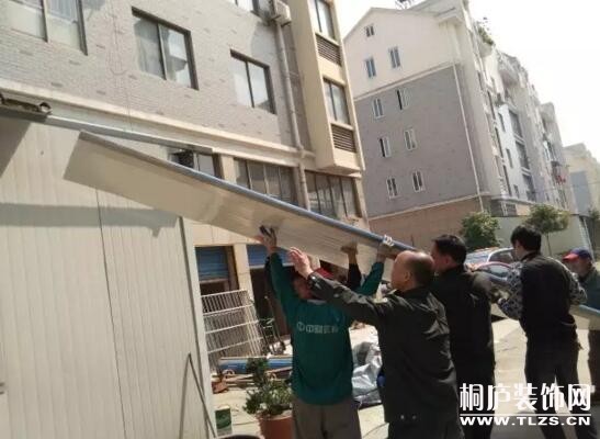 图为违规彩钢房拆除中