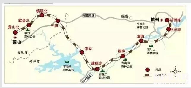 按照设计规划,今后从火车东站出发,大约10分钟到杭州南,15分钟到富阳,25分钟到桐庐,35分钟到建德,从杭州到黄山最快只要一个半小时,如果从终点站黄山北站距离黄山风景区,大概有50公里,坐大巴估计要半个小时左右。